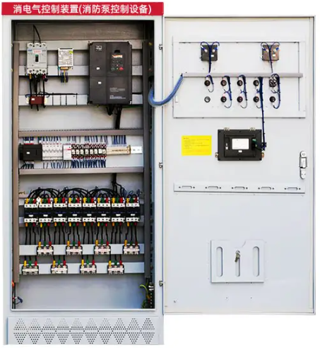 消防电气控制装置主要用于消火栓系统。采用星三角启动方式。2. 系统有手动和自动功能。自动运行时,自动指示灯亮起,当消防信号到达时,水泵自动启动。手动运行时,手动运行指示灯亮,可手动启动和停止待启动的水泵。3. 系统具有故障切换功能。当一台水泵超负荷运转时.另一台水泵将投入运行。此时,黄色故障指示灯亮起,故障报警蜂鸣器报警。4. 系统设有信号反馈接口,可与消火栓、消防控制中心等连接。