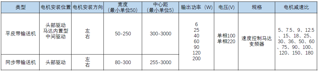 平皮带输送机、同步带输送机、塑料链条输送机、单侧滚子链输送线、网带输送机、倍速输送机等2、驱动类型分类: